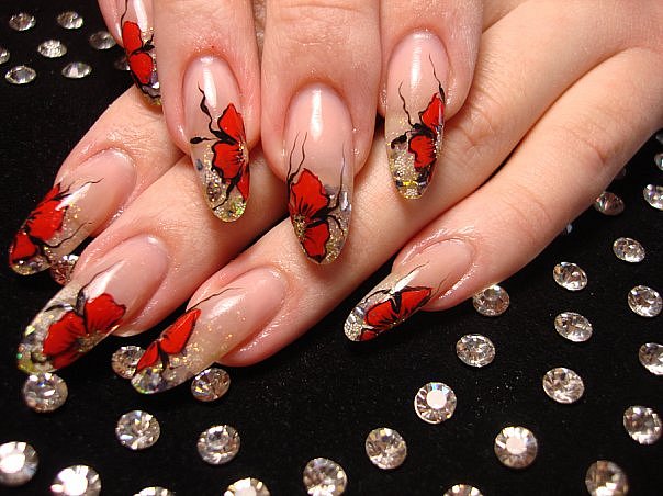 Прозрачные ногти + художественная роспись