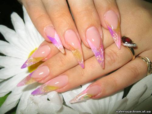 Декоративный френч. Кончик ногтя выполнен с применением цветных пудр и слюды. Прорисовка акриловыми красками.